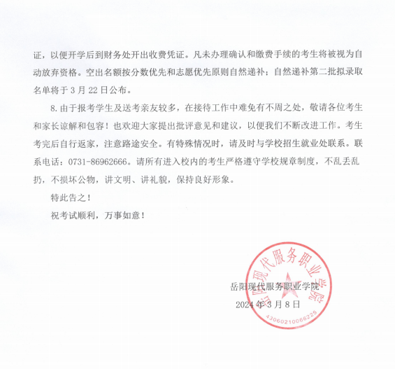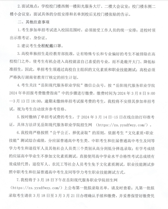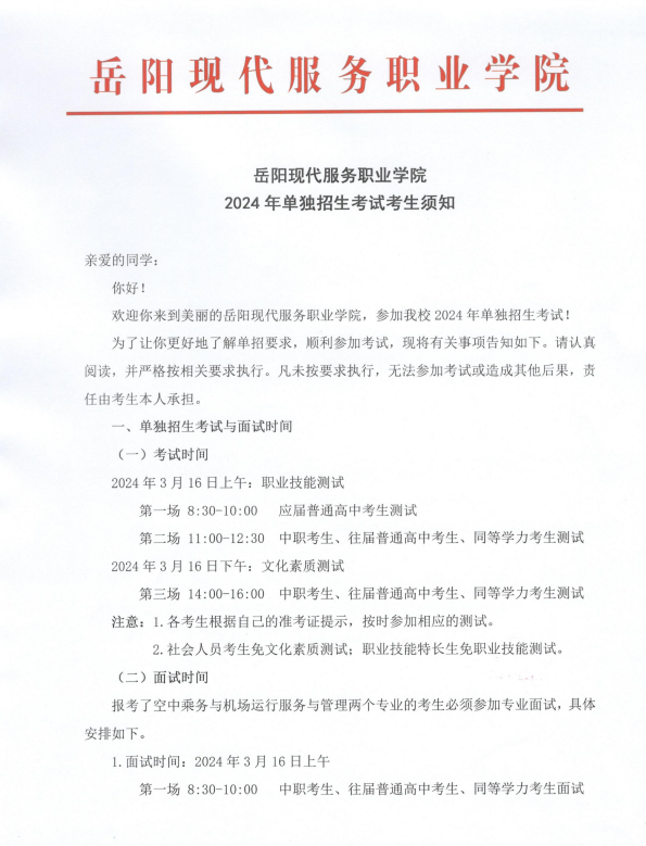 岳阳现代服务职业学院 2024年单独招生考试考生须知.pdf