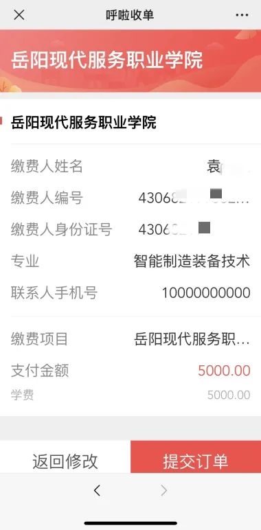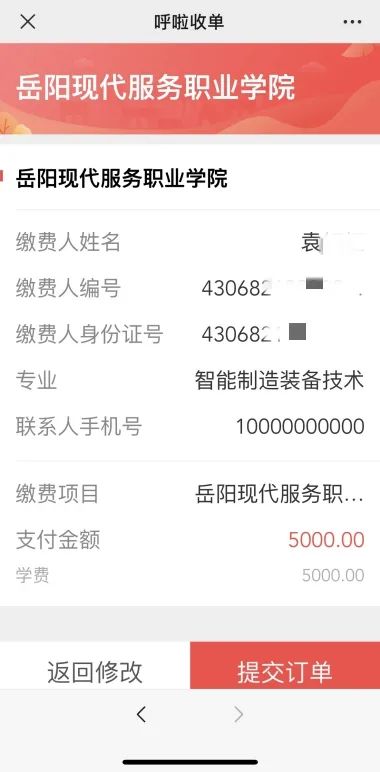 4、确认预录取信息(个人信息+预录取专业+预交学费金额)