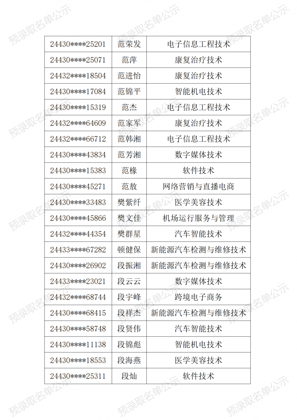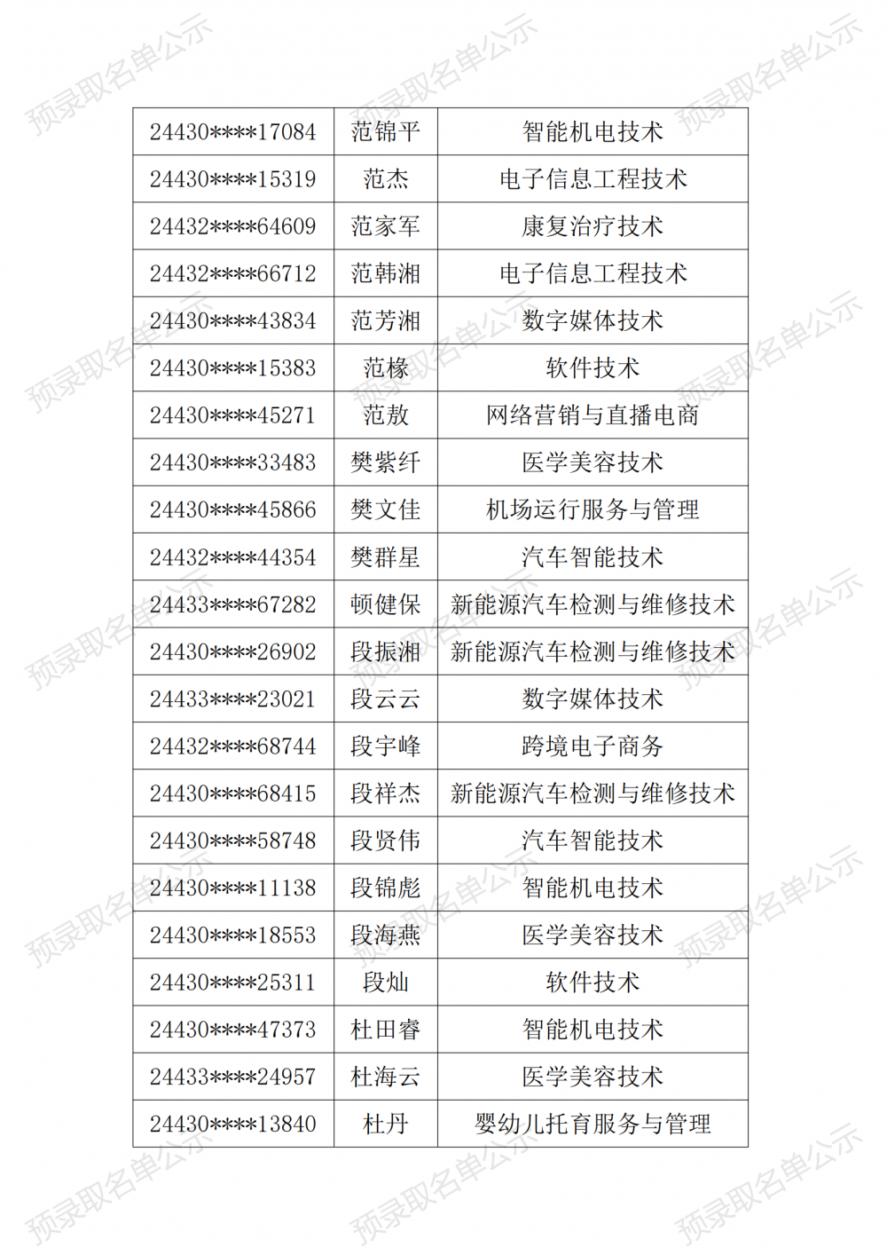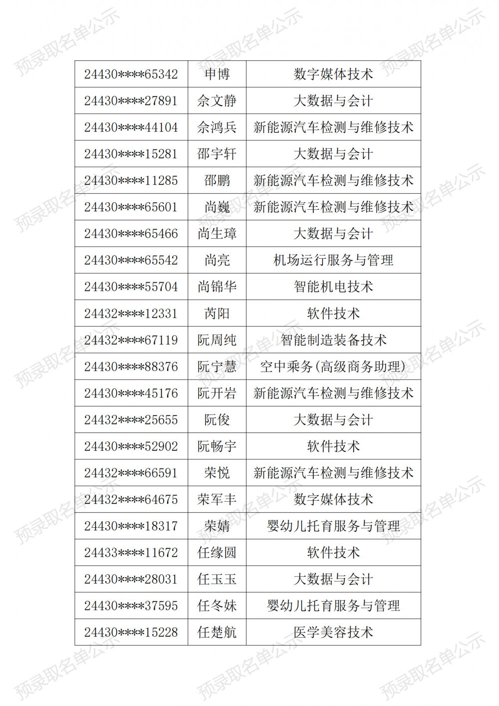 根据湖南省教育厅《关于做好湖南省2024年高职(高专)院校单独招生工作的通知》(湘教发〔2023〕49号)和《关于做好2024年高职院校单独招生有关工作的通知》(湘教考通〔2024〕1号)精神,依据《岳阳现代服务职业学院2024年高职单招章程》相关规则,我校2024年单招拟录取名单,按要求上报湖南省教育考试院审核并通过,现予以公示。