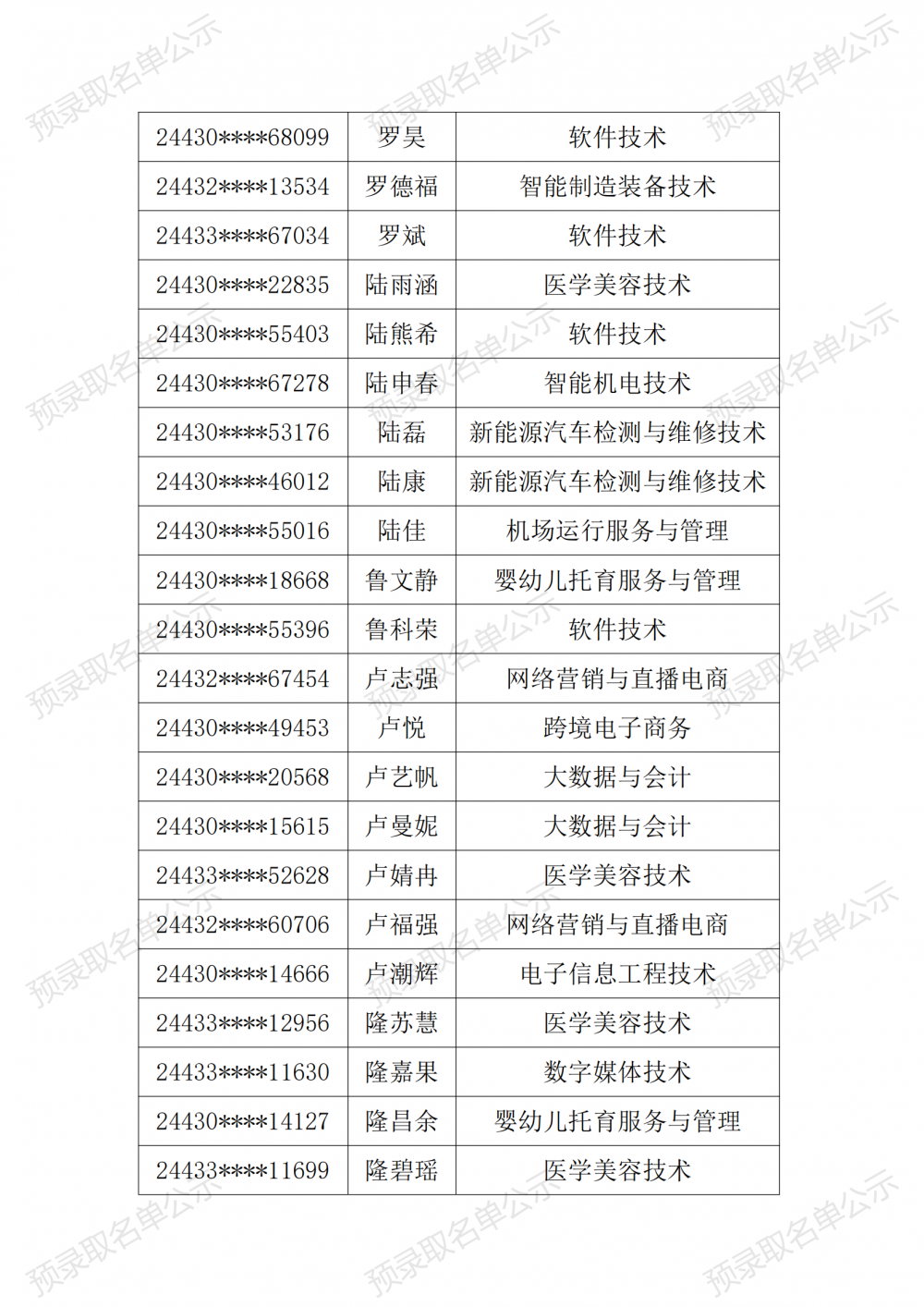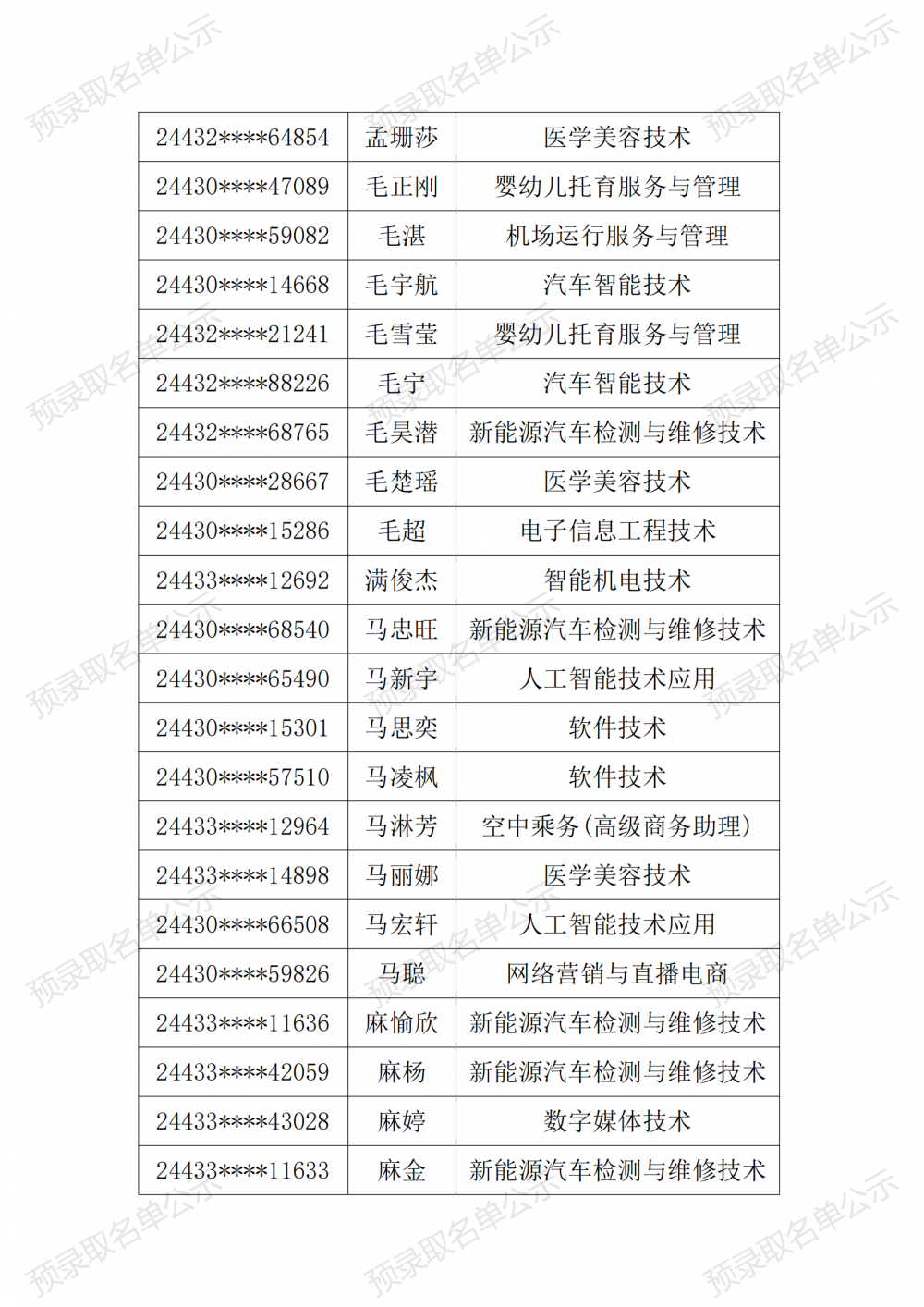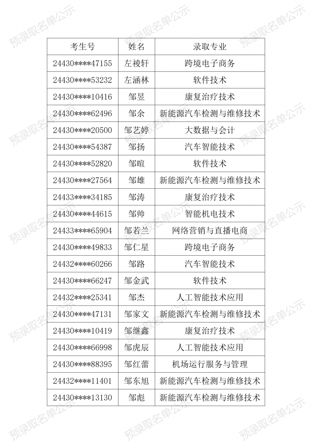 根据湖南省教育厅《关于做好湖南省2024年高职(高专)院校单独招生工作的通知》(湘教发〔2023〕49号)和《关于做好2024年高职院校单独招生有关工作的通知》(湘教考通〔2024〕1号)精神,依据《岳阳现代服务职业学院2024年高职单招章程》相关规则,我校2024年单招拟录取名单,按要求上报湖南省教育考试院审核并通过,现予以公示。