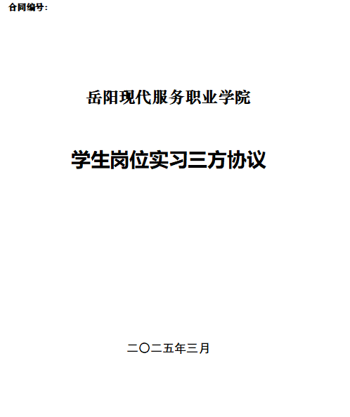 岳阳现代服务职业学院学生岗位实习三方协议