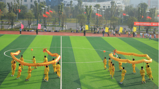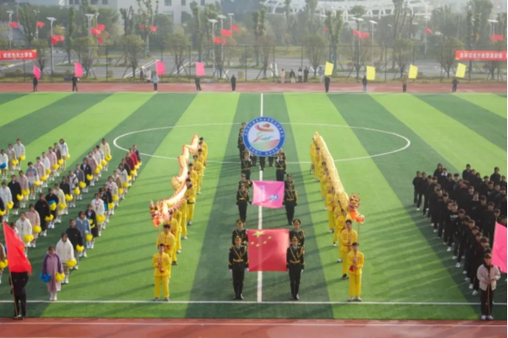 在激昂的《运动员进行曲》中,国旗护卫队、校旗护卫队、舞龙队以及由各学院组成的方阵依次入场。队员们身着整齐服装,高喊口号,分别展演了独具特色的节目,展现了岳阳现代服务职业学院学子积极向上、开拓进取的精神风貌。