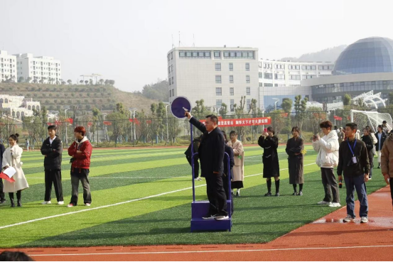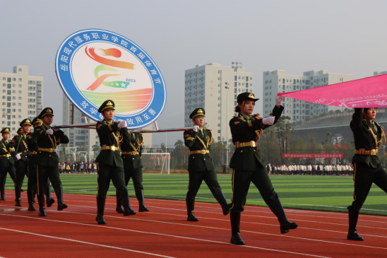 青春逐梦新时代,奋力奔跑新征程。11月16日上午,岳阳现代服务职业学院首届体育节暨田径运动会开幕式在学校田径场隆重举行。学校党组织负责人张文兵、学校副校长万忠保、学校副校长张莉、各二级学院以及相关职能部门负责人出席本次仪式。