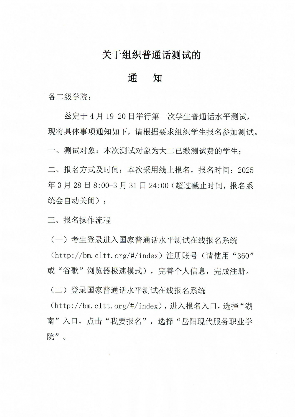 关于组织普通话测试的通知