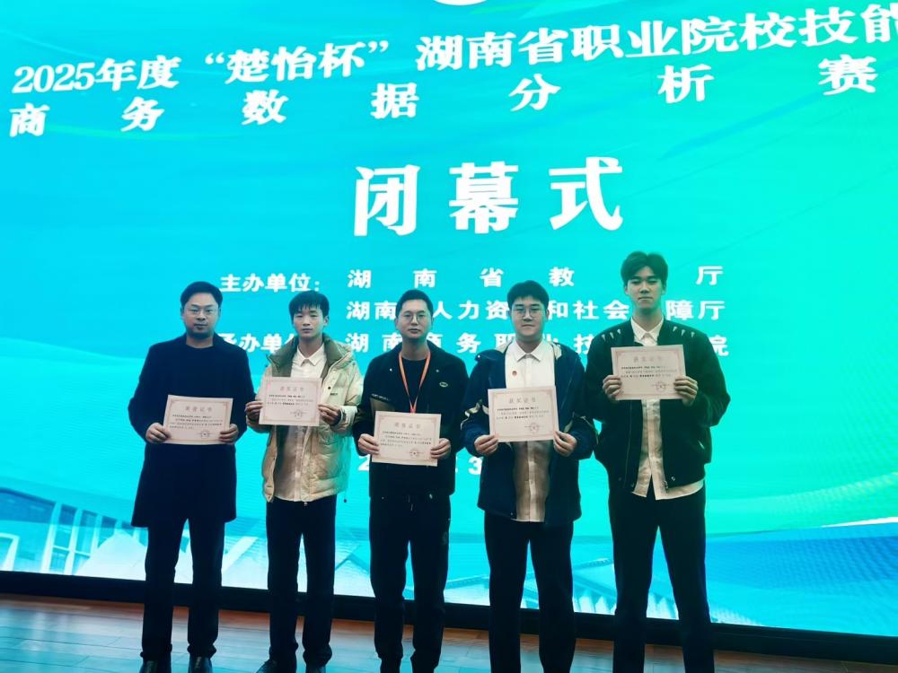 3月22日22时,2025年度“楚怡杯”湖南省职业院校技能竞赛高职高专组商务数据分析赛项在长沙落幕。在网络营销与直播电商专业叶知行、胡航两位指导教师的带领下,由钟城、李超、罗智源三名同学组成的竞赛团队,历经10小时全封闭式竞...